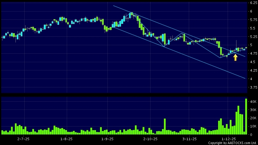 区域突破指股价在过去的一段时间只在一个范围在内活动,然後股价上升作出突破,升穿区域的顶部,技术走势向好。(港股报价延迟最少十五分钟。沽空资料截至 2025-12-12 16:25。)