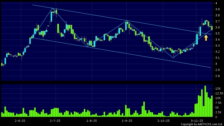 区域突破指股价在过去的一段时间只在一个范围在内活动,然後股价上升作出突破,升穿区域的顶部,技术走势向好。(港股报价延迟最少十五分钟。沽空资料截至 2025-12-15 16:25。)