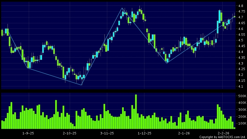 免责声明:以上金融市场数据丶报价丶图表 及/或各种技术分析指标乃根据公开资料分析和演释自动生成的,仅作参考使用。此类自动生成的内容并不代表AASTOCKS.com Limited的立场。AASTOCKS.com Limited并不保证其准确性丶完整性丶实时性或者正确性。阁下应谘询独立专业意见,以核实定价资料或获取更详细的市场信息及须为所有跟随此类自动生成的内容执行的交易或使用该内容负责。