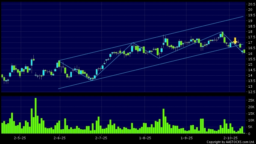 區域突破指股價在過去的一段時間只在一個範圍在內活動,然後股價下跌作出突破,跌穿區域的底部,技術走勢偏軟。(港股報價延遲最少十五分鐘。沽空資料截至 2025-10-14 16:25。)