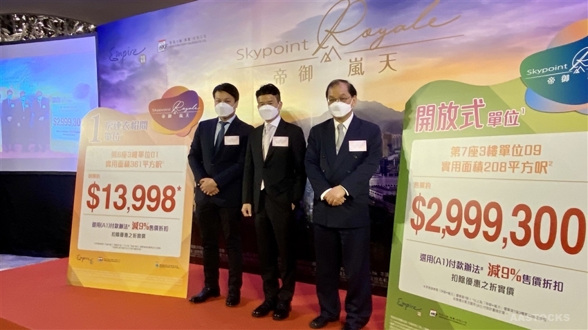 Skypoint Royale, jointly developed by Empire Group and HK FERRY (HOLD) (00050.HK)  0.000 (0.000%)   , has announced the first price list, involving 112 units with saleable area of 208-361 sq. ft..