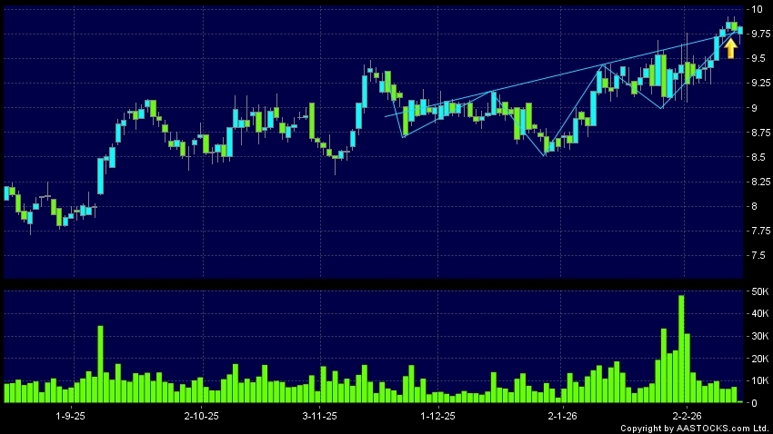 HANG LUNG PPT(00101.HK) appears an upside breakout, rose above the neckline. Last printed at 9.800; rose 0.102%; on volume of 1.08M shares and turnover of $10.57MRecent Performance...