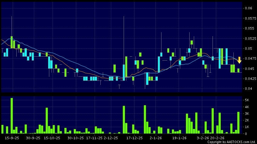 Disclaimer:The information, financial market data, quotes, charts, statistics and / or various technical analysis indicators are automatically generated based on the analyses and interpretations of publicly available information and should be used as references only at your own discretion. Such automatically generated content does not reflect the views or opinions of AASTOCKS.com Limited nor does AASTOCKS.com Limited make any guarantees to their accuracy, completeness, timeliness or correctness. You are advised to consult independent professional advice to verify pricing information or to obtain more detailed market information. Any uses of information or trades executed following the said automatically generated content are taken at your own risk for your own account.