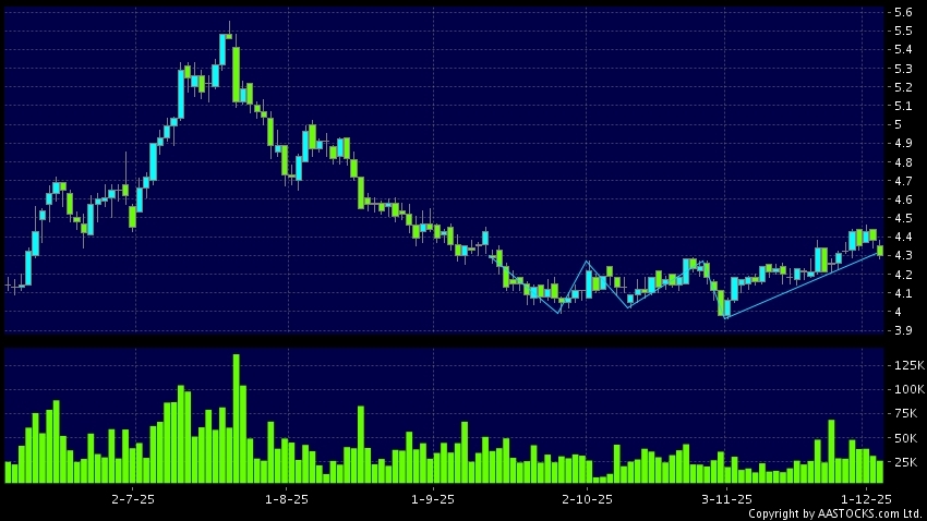 Triple bottoms mean stock price dropped three times to a similar level, but keep rebounding afterward. The three bottoms is a critical supportive level, and investor should aware of this stock, since it is a bullish signal.(HK stocks quote is delayed for at least 15 mins.Short Selling Data as at 2025-12-04 16:25.)