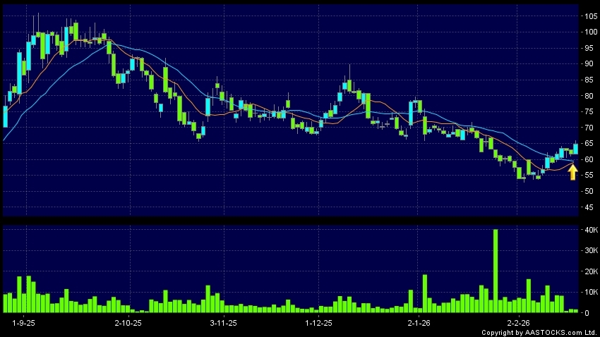 INNOSCIENCE(02577.HK)'s SMA 10 crosses above SMA 20, which is a golden cross. Last printed at 64.850; rose 5.276%; on volume of 1.75M shares and turnover of $113.55MRecent Performa...