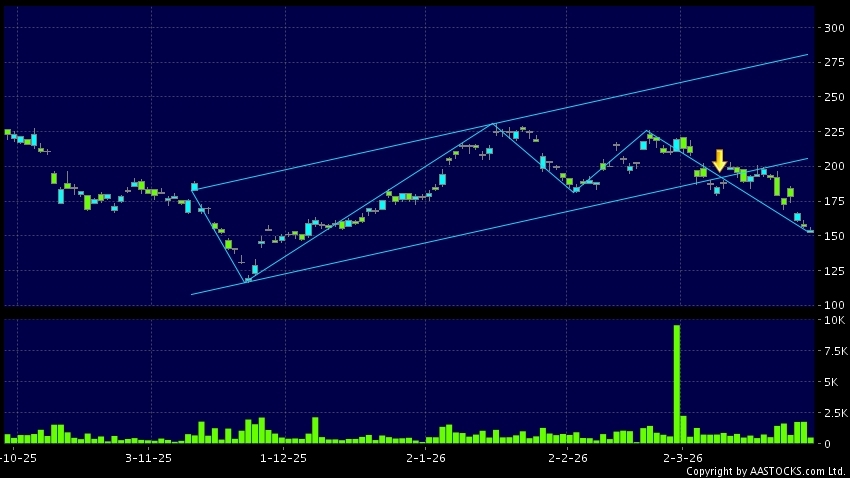区域突破指股价在过去的一段时间只在一个范围在内活动,然後股价下跌作出突破,跌穿区域的底部,技术走势偏软。(港股报价延迟最少十五分钟。沽空资料截至 2026-03-27 12:25。)