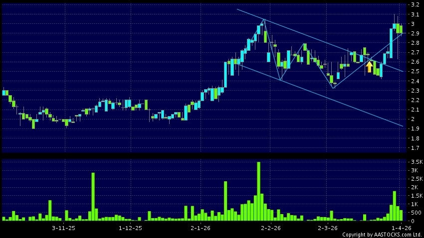 免責聲明:以上金融市場數據、報價、圖表 及/或各種技術分析指標乃根據公開資料分析和演釋自動生成的,僅作參考使用。此類自動生成的內容並不代表AASTOCKS.com Limited的立場。AASTOCKS.com Limited並不保證其準確性、完整性、實時性或者正確性。閣下應諮詢獨立專業意見,以核實定價資料或獲取更詳細的市場信息及須為所有跟隨此類自動生成的內容執行的交易或使用該內容負責。