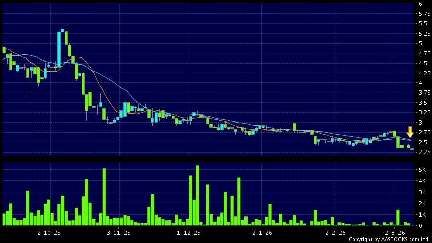 免責聲明:以上金融市場數據、報價、圖表 及/或各種技術分析指標乃根據公開資料分析和演釋自動生成的,僅作參考使用。此類自動生成的內容並不代表AASTOCKS.com Limited的立場。AASTOCKS.com Limited並不保證其準確性、完整性、實時性或者正確性。閣下應諮詢獨立專業意見,以核實定價資料或獲取更詳細的市場信息及須為所有跟隨此類自動生成的內容執行的交易或使用該內容負責。